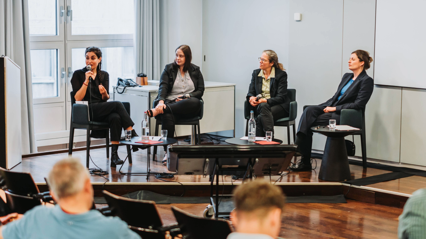 In the evening, Prof. Dr. Friederike Wapler of Johannes Gutenberg University Mainz, Dr. Samira Akbarian of Goethe University Frankfurt and Sabrina Kleinhenz of Technical University of Darmstadt addressed the issue of participation and representation of children and young people in our democracy in a public panel discussion at Erbacher Hof/Mainz. The panel discussion was hosted by Dr. Laura Anna Klein of Johannes Gutenberg University Mainz. Sabrina Kleinhenz, founding member and member of the management board of Dachverband der kommunalen Jugendvertretungen Rheinland-Pfalz e.V. spoke about how children and young people in our democracy can participate in youth councils. While demographic ageing in Germany is increasing, the majority of the young generation is not entitled to vote. Against this background, Friederike Wapler explained the relationship between representation and participation. The professor for public law whose research focuses on the rights of young people, stressed that it is important to always take children and young people seriously. She argued that this includes lowering the voting age. In view of the fact that it is not always, but very often, young people who occupy forests or block motorways to express protest in our society, Samira Akbarian explained when and what form of civil disobedience is beneficial to our democracy. This was followed by a lively debate with the audience.