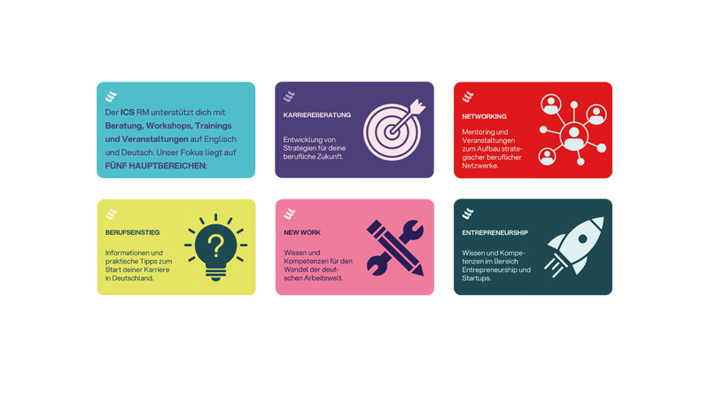 To address this issue, Frankfurt University of Applied Sciences, Goethe University Frankfurt, Hochschule Darmstadt, Hochschule RheinMain and Technical University of Darmstadt, in cooperation with Johannes Gutenberg University Mainz, founded the International Career Service Rhein-Main (ICS RM).