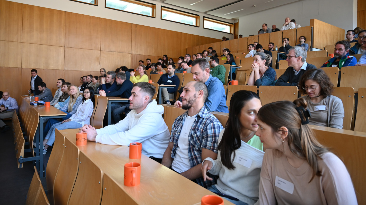 Bild 1: Gruppenfoto (Daniel Heß), Bild 2: Prof. Dr. Moritz Bigalke (Alexandra Foetisch), Bild 3: Teilnehmende Wissenschaftler*innen (Alexandra Foetisch), Bild 4: Postersession (Daniel Heß)