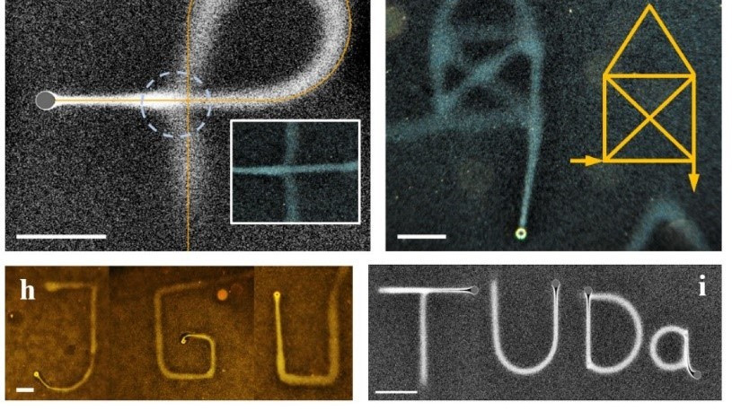 Forschende der JGU, der TU Darmstadt und der Universität Wuhan haben einen Ansatz entwickelt, mit dem man Tintenpartikel im Wasser zu Linien und Buchstaben anordnen kann.