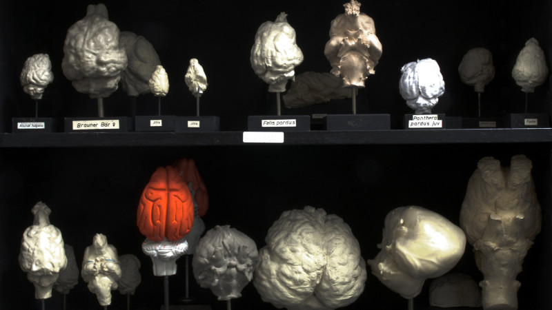 Modelle von Tiergehirnen. Foto: Tom Stern, Goethe-Universität Frankfurt