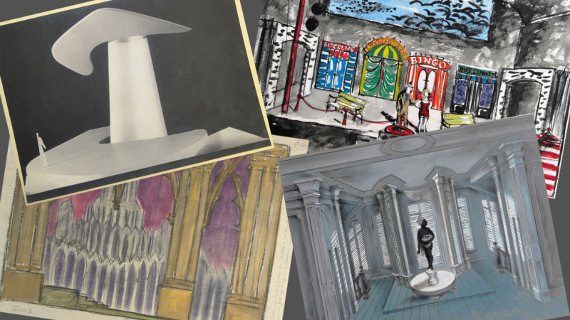 Bühnenbildentwürfe zu verschiedenen Aufführungen des Staatstheaters Darmstadt. Foto: Arne Kienzl